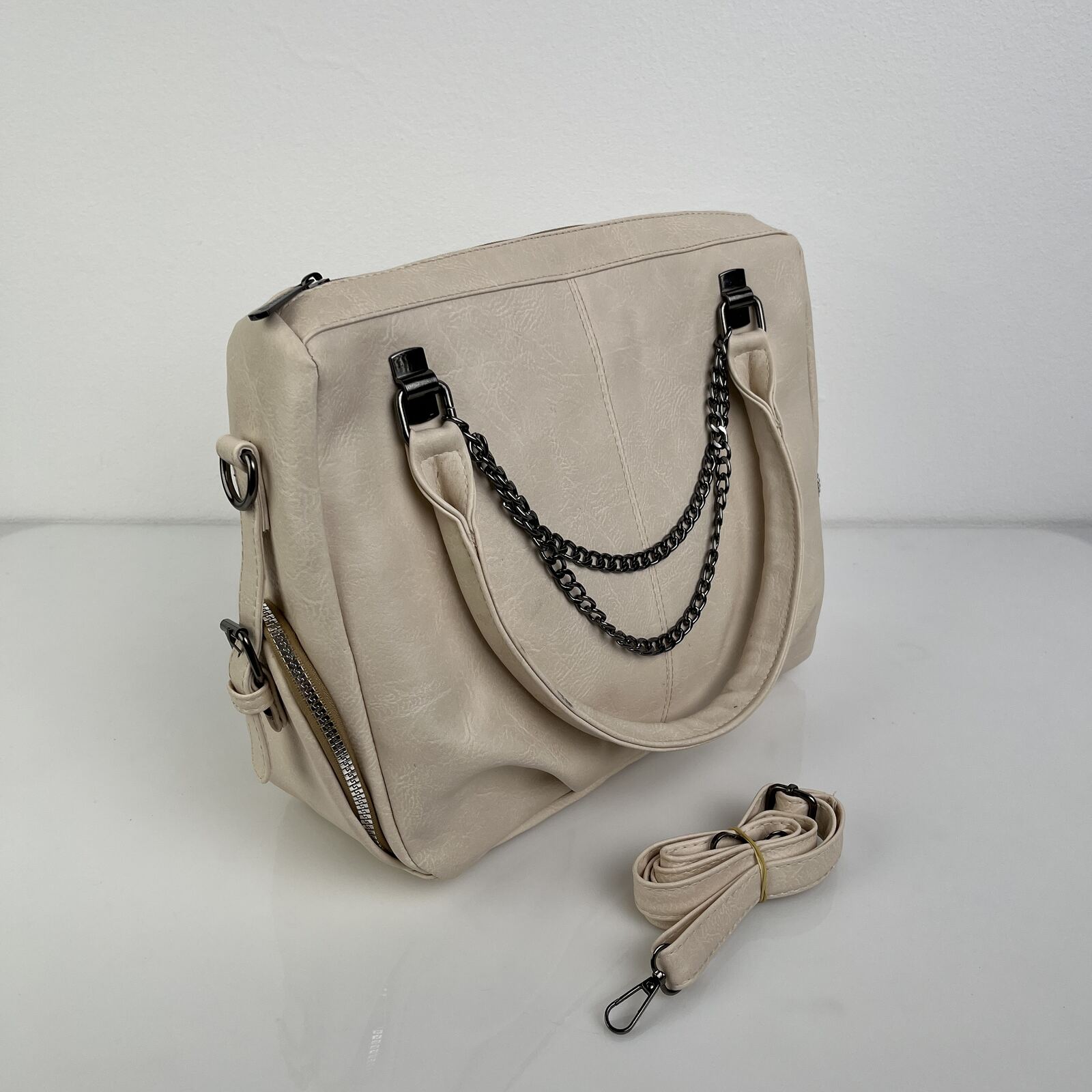 شنطة حريمي هاند ويمكن ارتداؤها كروس، مصنوعة من جلد إيطالي عالي الجودة، مزودة بـ سوست وإكسسوارات مستوردة قوية، تصميم واسع ومناسب للخروجات اليومية والسفر والشغل، بحجم طول 30 سم × عرض 40 سم يسع الاحتياجات الأساسية وأكثر مع شكل أنيق ومميز بسلسلة أمامية تضيف لمسة شيك.