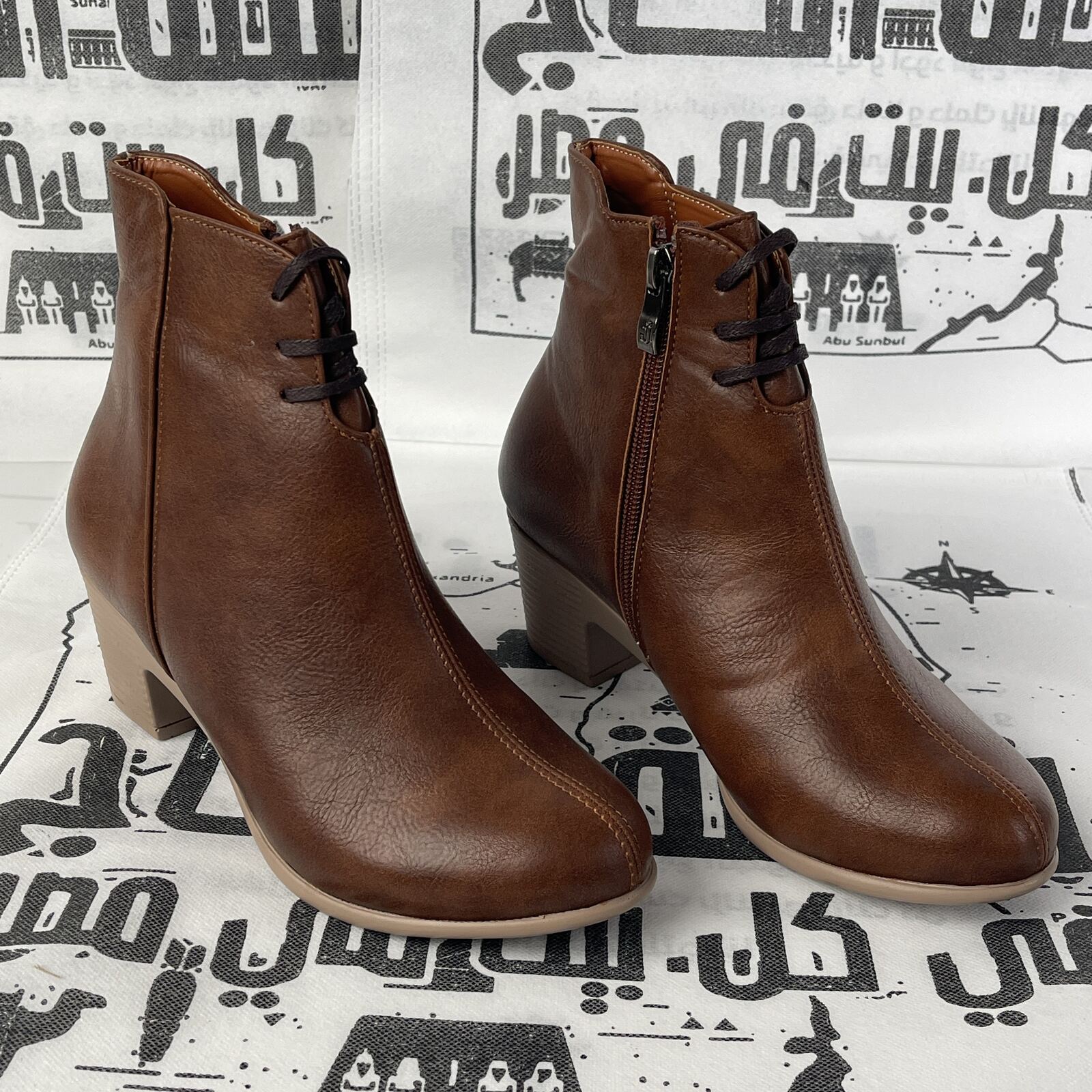 هاف بوت حريمي جلد إيطالي مستورد لون هافان بسوستة لسهولة اللبس وفرش جلد ونعل طبي مريح بكعب 4 سم