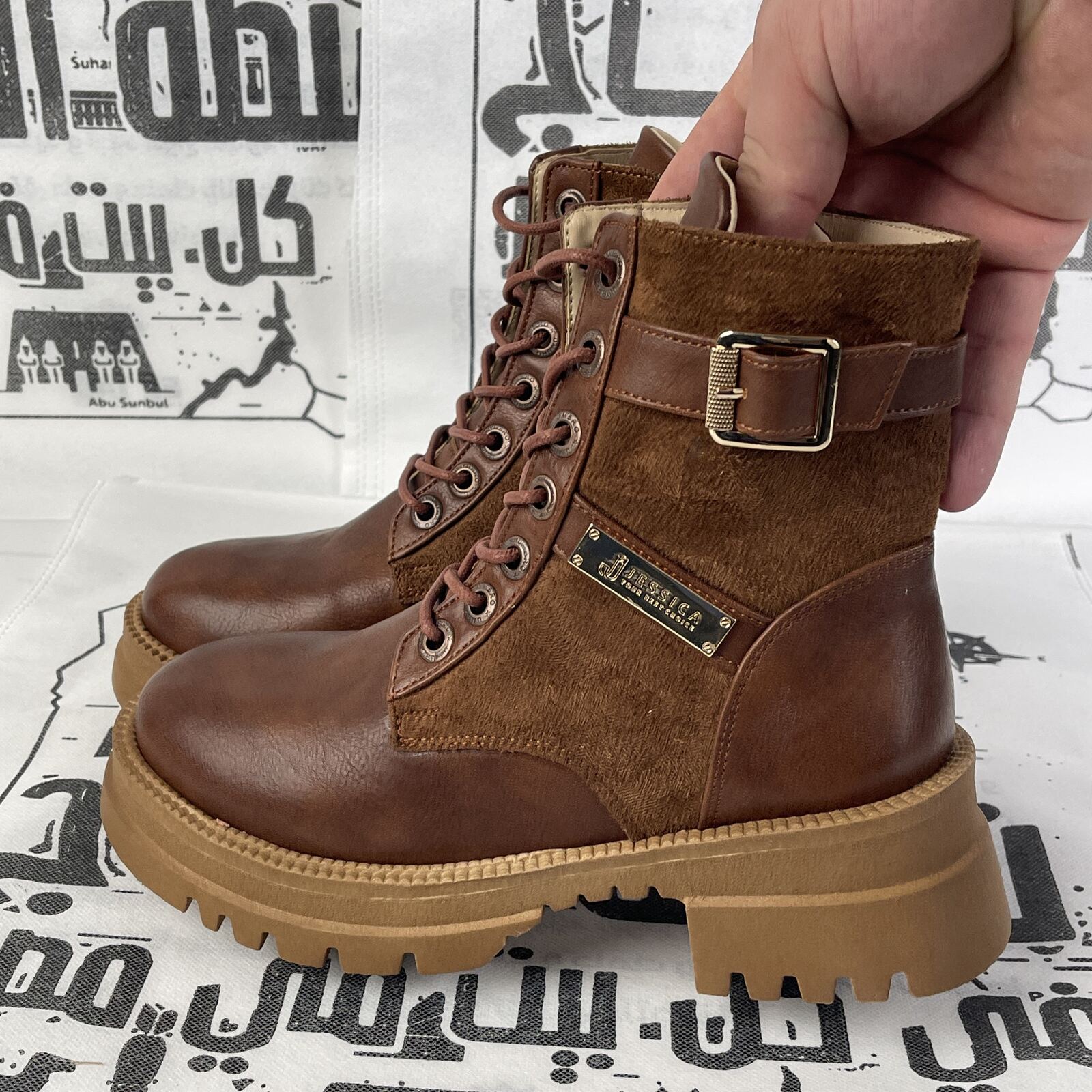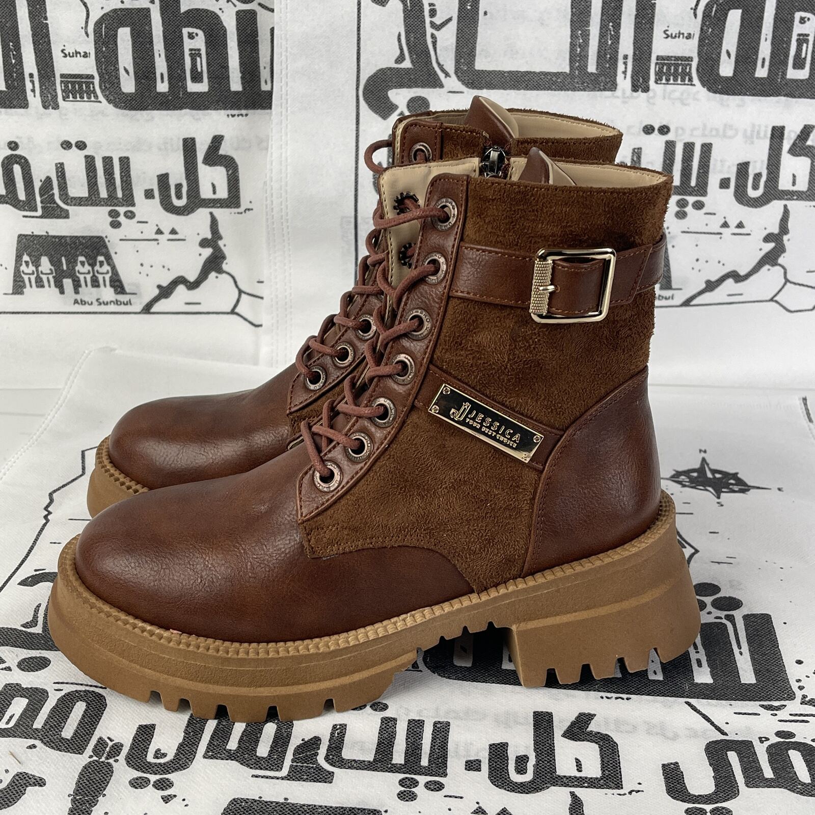 هاف بوت حريمي مصنوع من جلد إيطالي مستورد عالي الجودة، مزوّد بـ رباط أمامي وسوستة مستوردة متينة لسهولة اللبس والخلع، مع نعل بلوتان طبي مريح يوفر راحة وثبات أثناء الاستخدام، وارتفاع نعل 3 سم مناسب للّبس اليومي ويجمع بين العملية والشكل العصري.